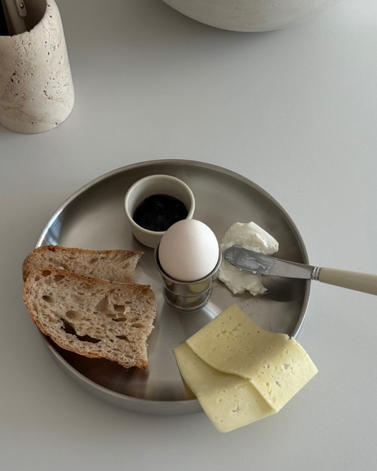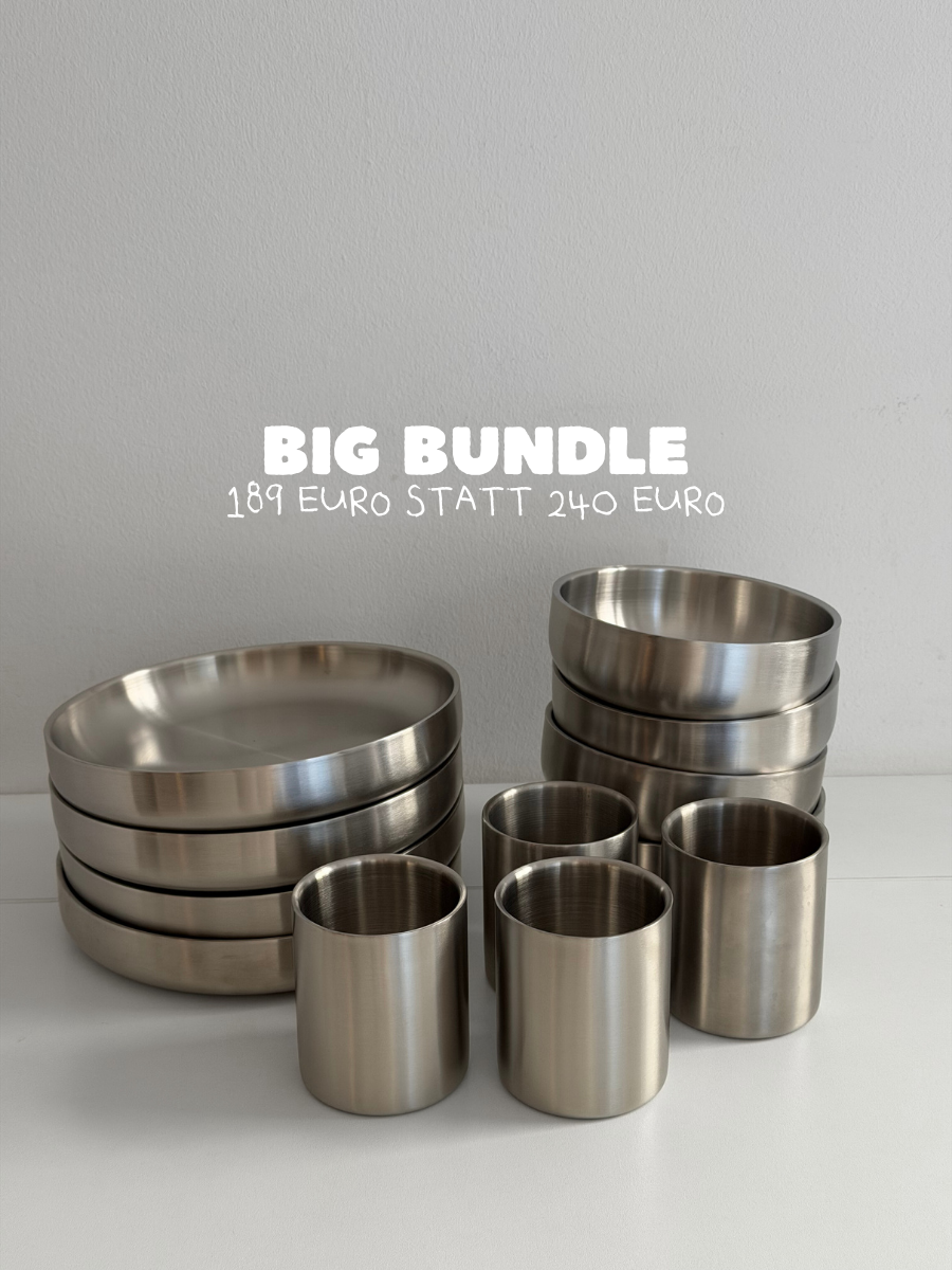 Edelstahl hat einige positive Eigenschaften. Er ist robust, temperaturbeständig, langlebig und hygienisch. Langlebiges Edelstahl entwickelt mit der Zeit eine natürliche Patina aus Kratzern, die ihren Charakter und ihre Haltbarkeit unterstreicht.